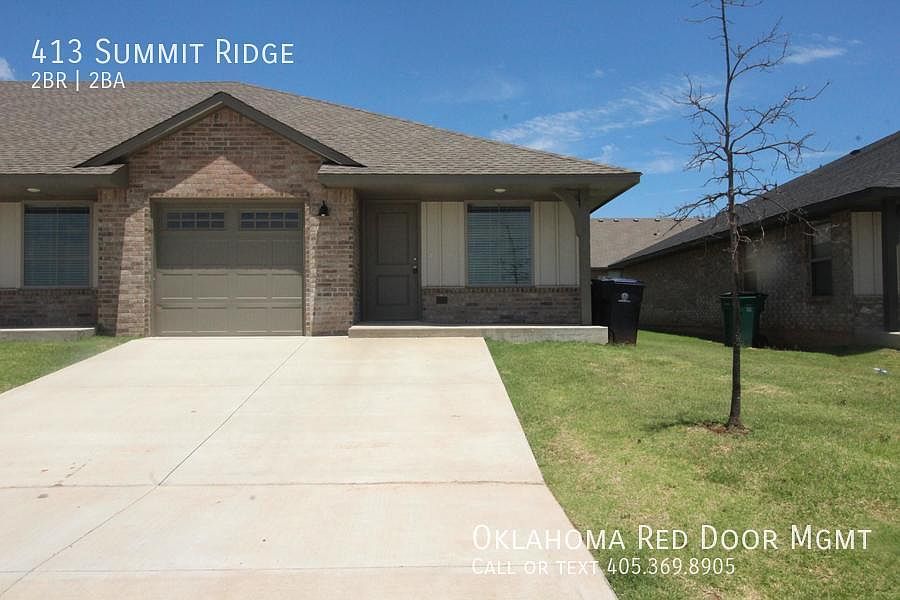 This 1089 square foot single family home has 2 bedrooms and 2.0 bathrooms. This home is located at 413 Summit Ridge Dr, Oklahoma City, OK 73114.