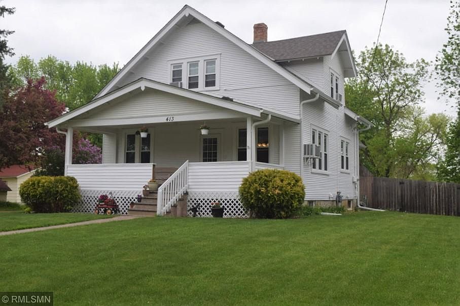 Affordable, neat and clean, classic 4 bedroom, 2 bath home. Newer roof and windows. Freshly painted inside and out. Updated electric and plumbing. Hardwood floors throughout except kitchen and bathrooms are tiled. Relax and enjoy outdoors from covered front porch, back deck/patio or upper level balcony. Large private fenced backyard. Across from Luce Line Trail. Great home for $199,900. Call to see!