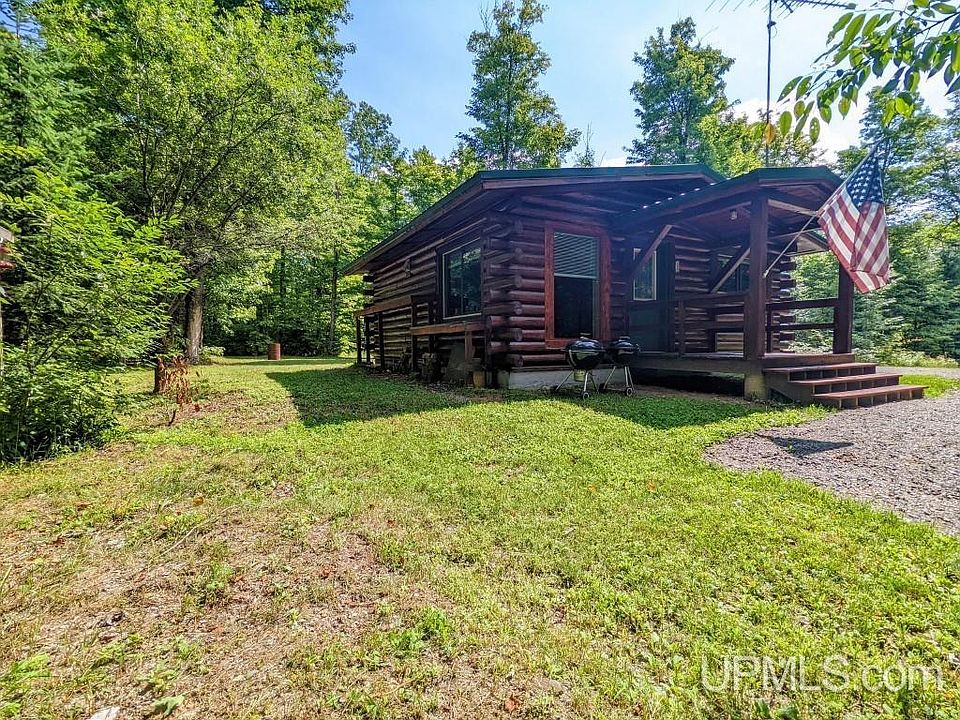 Beautiful little log cabin in the woods! Sitting adjacent to thousands of acres of Ottawa National Forest and near Golden Lake, James, Tamarack and Smoky Lakes as well as the Paint River North & South Branches and Cooks Run River. Cedar log siding and metal roof on the outside, Spruce tongue & groove interior paneling on the walls with Coretec luxury vinyl flooring under foot & vaulted ceilings above...this compact northwoods escape is all you need. The kitchen comes complete with dishes, pots & pans and flatware and there's a closet already plumbed for a washer & room for a dryer. The bedroom features an additional loft sleeping space above the closet. Snowmobile and ATV is a dream with Trail #2 just a mile and a half down the road. This incredibly insulated cabin is easy to keep comfy with the baseboard electric heat, then bring it to your desired level of toastiness with the wood fired woodstove as you ready for your next adventure. Local wi-fi internet provider has a tower on the property giving you the option of great available signal for working remotely...when you want. Original cabin was from the Michigan State University Forestry property on Golden Lake, but was moved and completely renovated from the studs up in 1996 and sits on crawlspace with installed liner and de-humidification system. 6 drilled well and 1000 gallon septic system insure worry-free cabin stays whether short term or full-time. This would make a GREAT Airbnb/VRBO property. Schedule a look today!
