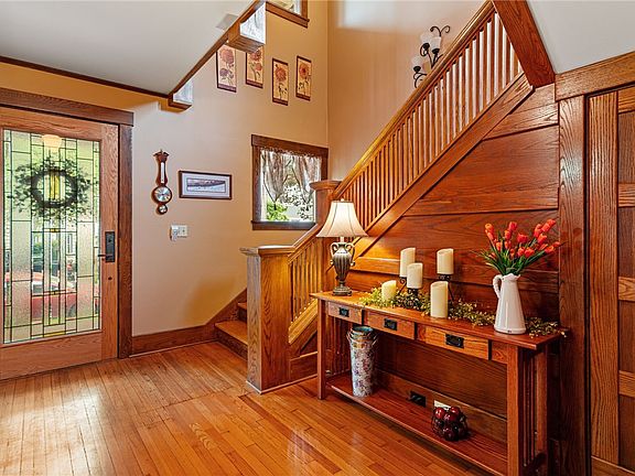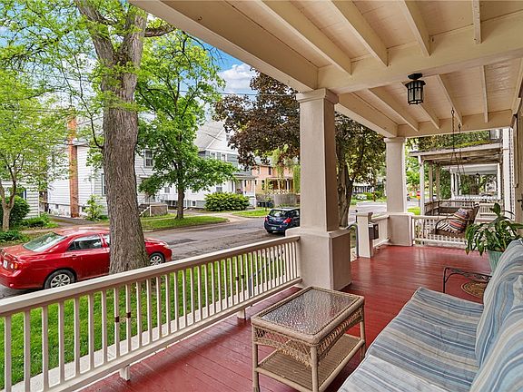 A true one of a kind, 5 bedroom, 2 bath Fall Creek gem with an exceedingly rare DOUBLE LOT. Nestled along a tranquil side street with southern exposure and off street parking. Fully fenced yard with beautiful landscaping and foliage. Inside has lovingly maintained, original wood trim details and refinished hardwood flooring throughout. Magnificent foyer entry with spacious seating area above. 1st floor bedrooms and an eat-in kitchen/ground floor layout are perfect for entertaining or guests. Impressive 1st and 2nd story decks on either side of the home, including a custom Brazilian hardwood deck in the rear. Large primary suite with walk in closet. Nicely sized bedrooms and ample locations for ones’ home office(s). Located just a few minutes’ walk from Fall Creek Elementary school, Gimme Coffee, and Ithaca Falls. Enjoy living in the heart of Downtown Ithaca, matching character and utility with a true sense of peace and quiet. The third floor boasts an additional 710 sq. ft. of flex space and invaluable storage. Perfect for activities and the next owners’ vision. New-construction garage with electric and poured concrete floor, ideal for taking advantage of Ithaca’s newly passed Accessory Dwelling unit legislation. True double lot at 7,980 sq ft! This property is as elegant and turn-key as it is warm and welcoming. Bedroom count and sq. footage is derived from plans. Pre-inspection report available.