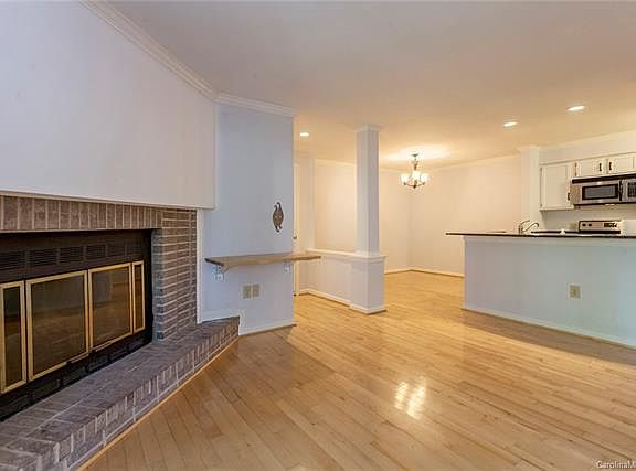 We have Google Fiber High-speed internet here! A peaceful part of Uptown, this Fourth Ward condo offers an open floor plan with a 2nd story porch/balcony view of Fourth Ward Park. You can embrace the best of Uptown living in walking distance to bars/restaurants, BOA Stadium and BB&T Ballpark. Cozy up to the fire place, enjoy the sounds of birds in the park, or just walk around Uptown! The large Primary bedroom with lots of closet space and mirrors has private access to a shared hall bath. Secondary bedroom has access to the large balcony. Dining area off kitchen plus breakfast bar overlooking living room. Hardwood floors in main areas with carpet in bedrooms. Using tax role measurements until professional measurements can be made.