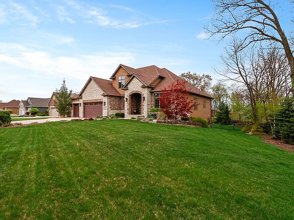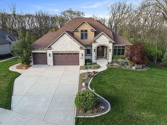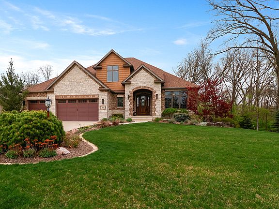 Experience this exquisite custom built home in sought after Arbor Lakes Estates.Beautifully nestled upon a rare three-quarter of an acre lot, this 5 bedroom, 3.5 bath home offers spacious elegance and room for all.An impressive entry awaits with soaring ceilings and stunning flooring flowing throughout. A convenient main floor den is ideal for work-at -home and is accented by a rich coffered ceiling. Enjoy gatherings in your open concept great room graced by a gorgeous stone fireplace, striking coffered cathedral ceilings, and gorgeous views through large lofty windows.The gourmet kitchen will inspire your inner chef with a HUGE island, coffee/wine bar, built in range, and custom kitchen table. A spacious dining is ideal for that extra entertaining space. A tranquil MAIN FLOOR primary bedroom features a spectacular en-suite, huge walk-in closet and gorgeous morning views! The main floor is completed with a fantastic over-sized laundry/mudroom and beautiful half-bath. Upstairs, you will find a large loft space, perfect for homework or hanging out. Down the hall, 3 more generously sized bedrooms and a full bath await. Let the fun begin in this amazing WALKOUT basement featuring a large family room (built in fireplace and media), second game area, bedroom and full bath. The basement also showcases an amazing wet-bar showcasing a spectacular live-edge wood counter, full size beverage fridge, built-in ice-maker, microwave and dishwasher. As if this wasn't enough, the true show stopper is when you walk outside! A serene retreat awaits featuring a custom masonry patio w/ fireplace, large deck, built-in gas grill, a fire pit nestled within the trees, gorgeous landscaping and backing up to wetlands - this backyard is a RARE GEM! Fully fenced in and ready for kids or pets. This home has SO many more features including a whole house generator, garage w/ electric car charging stations, irrigation, 2 x 6 construction, Anderson windows, and quality throughout!