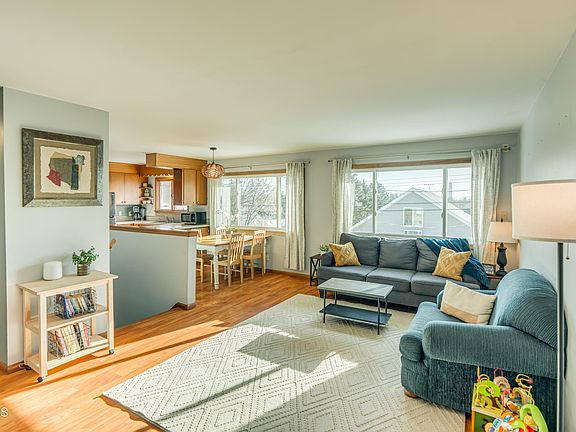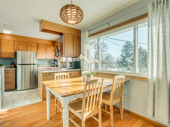 This bright and inviting mid-century ranch-style home is nestled in a great central/NW Bismarck neighborhood. The main level features a welcoming entry with coat closet and built-ins offering easy access to the bedrooms, kitchen, living room, and lower level. The open-concept living and dining areas feature updated south-facing windows that flood the space with natural light, offering views toward Hughes field and the Cathedral steeple. The kitchen has updated counters/backsplash, stainless steel appliances, and a pantry with an adjacent bonus pantry/broom closet. The main level includes two bedrooms and a full bathroom with hallway linen closet. The walkout basement offers a versatile multi-purpose living room large enough for movie nights, playtime, and a home office or exercise area. The lower level also includes a bedroom or office; a ¾ bathroom with a hallway built-in linen closet; storage/utility room with a radon mitigation system; and a laundry room with backyard access and under-stair storage. The fenced backyard features a concrete patio. The home has many updated windows. The single-stall garage has room for storage. Located close to Tom O'Leary golf course and tennis courts, with easy access to N Washington Street, this home offers both convenience and tranquility.