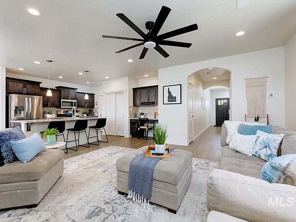 One year old home in very desirable South Meridian location! This move-in ready gem comes complete with fridge, washer, and dryer, stylish blinds, and meticulous landscaping, all encompassed by a secure, fully-fenced yard. Leave behind the hassles of new construction with all its noise, nails and dust. Jocelyn Park is fully developed. With no neighbors to the rear, your home directly adjoins the park, offering swift access to walking paths and playgrounds. This home is curated for connection. The open-concept great room becomes your canvas for entertainment, while the kitchen, adorned with granite counters, a cozy breakfast bar, and stainless-steel appliances, turns every meal into a gourmet experience. The thoughtful design places the laundry room upstairs, ensuring chores feel less taxing and more efficient. Oversized garage accommodates most trucks. Strategically located, enjoy a blend of serenity with easy freeway access and proximity to the best of local shopping, dining, and entertainment.