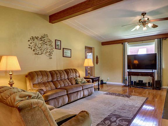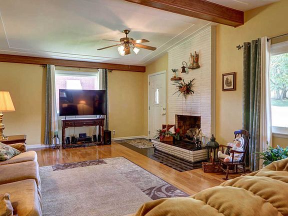 Welcome to this cute 3 bedroom 2 bathroom all brick home situated in Dale. Upon entering you will find a spacious living room that boasts beautiful hardwood floors, a gas fireplace with stone surround, a ceiling fan and wood beams on the ceiling. The kitchen features hardwood floors, ceiling fan, all appliances and an eat-in dining area. To round out the main level there are 3 bedrooms that are generous in size with plenty of closet space and a full bathroom. Downstairs is a fully finished, walk-out basement with a family room, bar, full bathroom, kitchen and dining area. This space makes for a great place to entertain! This home also has 1 car attached garage with extra parking space and a huge pole barn out back for any extra storage, tools or toys you may have. Step out back to enjoy the enclosed porch and beautiful backyard with a creek bed.