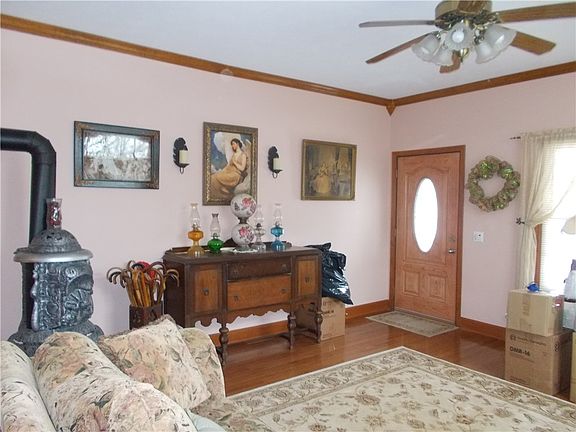 OH MY!!! Where do I start with this home having so many amenities!! This 1.5 story home has a HUGE Family room with wood floors, updated kitchen with built in hutches, office, bedroom, dining area, and bath all on the main floor. The upper level has two bedrooms and storage. This home on a corner lot has a large, heated garage with full bath,overhead doors, an area for entertaining or just sitting, watching TV. Adjoining the garage is a full bath, laundry and an adjoining exercise room. The exercise room could be used as a private office or a four seasons room. The property has a detached garage with heat & air, which could be used as a private business area. Other amenities include, unfinished basement, a deck, a patio and a shed being used as a workshop area. (The above ground pool is a negotiable item, and is not included in this listing). The light above the dining room table does not stay with the home, and the decorative stove in the living room does not stay with the home.