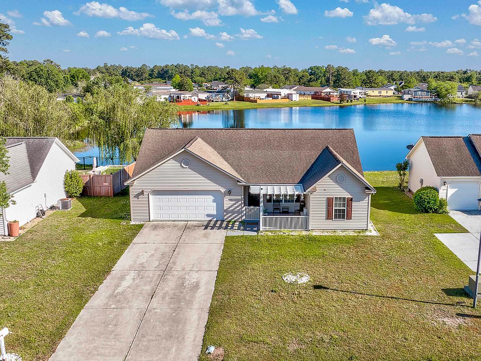 Welcome to this lake front 3-bedroom 2 bath home in the desirable Carolina Forest area with NO HOA. This open floor plan home features a large family room with vaulted ceilings and engineered hardwood floors. The beautiful kitchen features granite counter tops upgraded sink/faucet, glass/tile backsplash, luxury vinyl plank flooring and breakfast bar. The spacious master bedroom looks over the beautiful lake and features a large walk-in closet, engineered hardwood floors and ceiling fan. Both guest bedrooms feature, engineered hardwood floors, ceiling fans and good-sized closets. Sliding glass doors off the kitchen lead out to the back patio of the home that offers a view of the large lake behind the home! Enjoy the fresh Carolina air from the fenced and covered front porch of this home. The HVAC and water heater were both replace in 2022! This home is located in the heart of Carolina Forest and is just a short drive from area attractions, restaurants, shopping venues and local beaches! Do not pass up your chance to own this lovely home! Call today to schedule your showing!