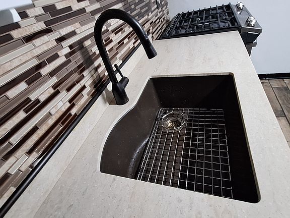 New kitchen sinkNew kitchen appliancesNew kitchen cabinetsNew kitchen countertopAll new plumbing fixtures