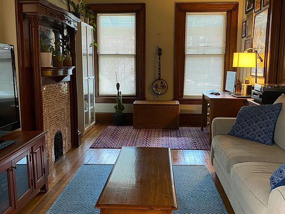 Large first floor apartment with hardwood floors and fireplace. Eat in kitchen, dining room, double living rooms that can be separated with pocket doors and one used as an office. Off street parking and small yard and garden. Easy walk to town and parks. Please note the tenant is still in the apartment. All showings will be after 4PM Owner pays for water, sewer, trash removal and heat. Tenant pays electric. One off street parking space. No smoking, no pets, not a student rental. Please note the tenant is still in the apartment. All showings will be after 4PM.