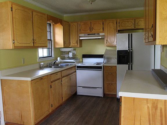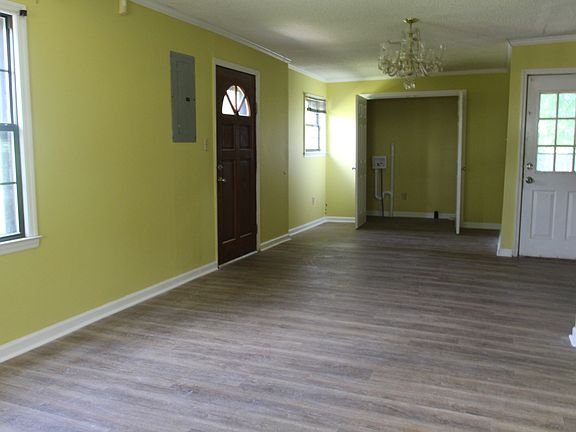 Large master bedroom with sitting area, open living/dining, stove included, fully fenced yard, wired storage building.