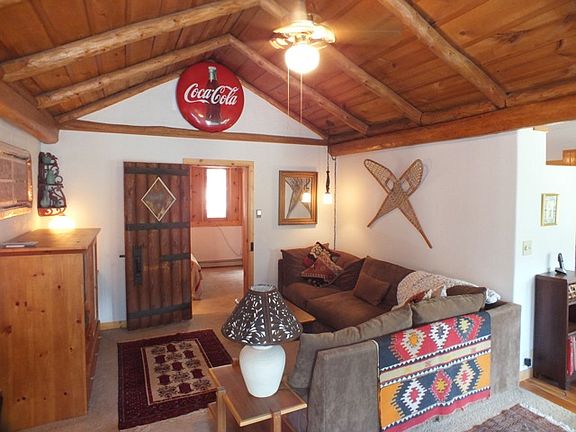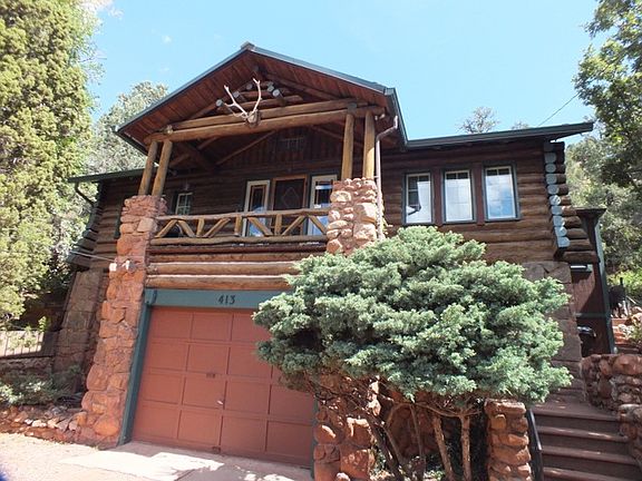 Pristine condition, German-style log cabin located just outside Manitou Springs business district! Includes adjacent, build-able lot. Meticulous restoration including hand-made cabinetry, rough-cedar ceiling and log walls. Fir wood floors. Italian tile back-splash and granite counter tops, maple butcher block and gas stove in the kitchen. Radiant floor heat in the bath and family room. Secluded yard with a ground-level, redwood deck & hot tub. Lower room could be a third bedroom. Adding a bath would be easy. Garage is a converted work shop. Plenty of off-street parking. Build-able adjacent lot to the south provides incredible privacy. Unique features throughout including stained glass windows and custom made front entry door. Hand-made wrought iron fencing. Covered front porch. Steel, standing seam roof. Extraordinarily unique property! Amazing views!