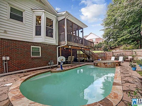 Award winning Homewood schools! Near the NEW Patriot Park community center/ pool, hot new pizza place and MORE! Great curb appeal! Corner homesite! Enjoy coffee on the front porch of this spacious home or relax in your own personal, heated, in ground pool YEAR ROUND or enjoy the poolside, stone whirlpool spa! Large living room with sleek fireplace! Enjoy preparing dinner in this awesome kitchen with TONS of cabinetry & granite counter/bar space! Decorative glass cabinetry and built in desk area! Bay window in breakfast nook overlooks private back yard, screened deck and pool! Dining room also opens to the screened in porch! Great for entertaining family & friends! Main level master suite with good closet space, long vanity space, separate tub and shower! Main level laundry and powder bath. Upstairs, there are four good sized rooms, one which could be a bonus/play room, and a hall bath with a double vanity. Basement level features large play/rec room and an office/bedroom! Awesome home!