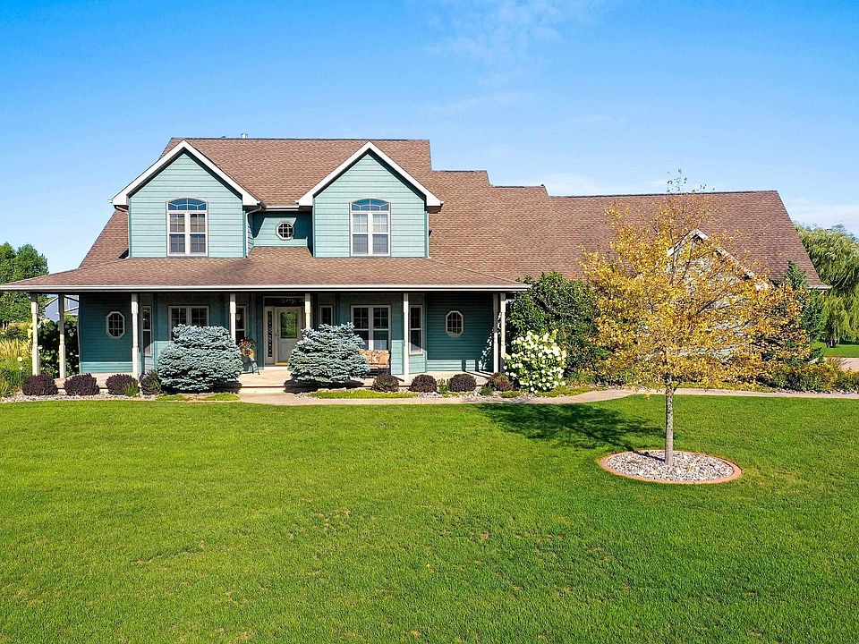 Experience country living at its finest in this exquisite 3,817 6-bedroom, 2.5-bath, 2-story gem priced at $630,000. Nestled on 1.23 acres adorned with lush foliage and majestic willow trees, this property offers serenity and space. The heart of this home is its inviting main floor great room, anchored by a cozy gas fireplace and artfully separated by elegant columns into a chef's dream kitchen and a grand center island. The generously sized dining area features wooden patio doors that open onto a stone patio, complemented by a stone walkway cascading down to the expansive backyard. Located between Appleton and Green Bay, this property offers an idyllic out-of-town escape. Showcasing a harmonious blend of modern living and natural beauty. Showings begin August 19