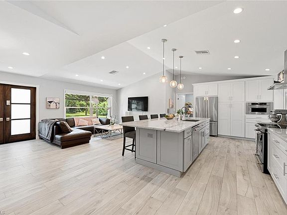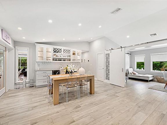 Don't miss this stunning and beautifully renovated 4 bed/2 bath estate house ! New roof, new A/C and interior/exterior freshly painted. As soon as you enter the driveway of this 2.5 acres lot dotted with recently trimmed palm trees and pines, the charm operates. Open the front door and discover an amazing open concept floor plan, all designed with a modern white/gray color palette, barn doors, giant granite island kitchen surrounded by built-in cabinets for an optimized storage. You will notice the brightness of this interior, thanks to many windows (with electric shades) and 4 sets of French doors which flood the interior with natural light. The outdoor space is perfect for entertaining too ! This L shape patio, embellished with a timeless travertine floor will give you plenty of space to enjoy your private pool... This house has it all and you'll feel at home right after stepping inside. Centrally located in the heart of North Naples close to shopping, dining, "A" rated schools w/ no HOA fees and tons of room for all your toys. Come and check out all this amazing North Naples estates neighborhood has to offer!