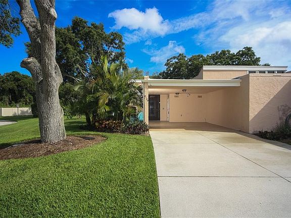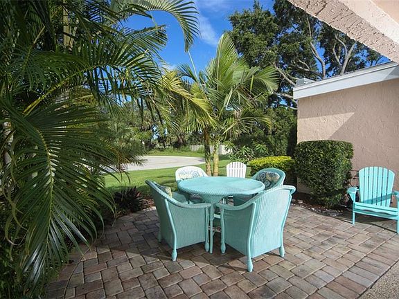 One Of A Kind! Almost 1900 SF living space in this renovated 2 Bedroom Golf front Villa with epoxy-coated Carport, Unique End unit location with cul de sac privacy and wrap around views. Kitchen has Corian, tile backslash, black appliances, pull-outs and soft close, and eat-at Granite center island. Master Suite has three closets, 2 sinks, walk in shower with niches and bench seat. Bedroom 2 has generous size and adjacent bathroom with walk in shower w/ niche and decorative tile design. 25'x25' Florida Room with 7th Fairway golf views. All windows & sliders PGT Impact with bronze tint, Fantastic interior Natural light, Paver patio in front as well as back to enjoy Outdoor living, spacious Storage room, Newer electrical service and plumbing, Interior Laundry Room with utility sink and extra storage cabinets, exterior Security Cameras, Tile Flooring throughout entire villa, No Popcorn anywhere, and all cabinets draws soft close. Condo Dues include cable/wifi, pest control, bldg exterior, ground maint. and irrigation, roof, and comm pool. Furniture Available for negotiation, on separate Bill of Sale.