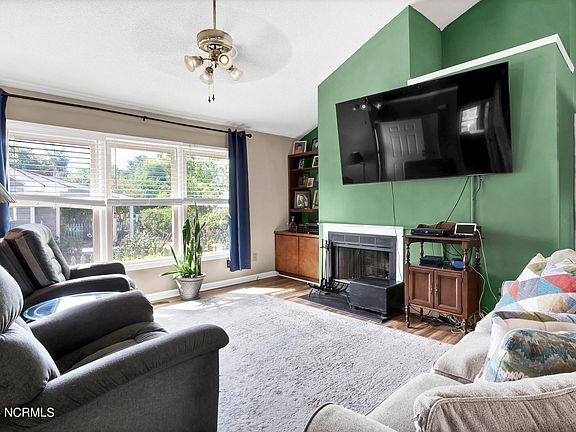 Welcome to your charming new home in Victoria Place! This three-bedroom, two-bathroom gem offers a perfect blend of comfort and convenience. As you enter, the living room greets you with vaulted ceilings, a built-in bookcase, and a cozy fireplace, providing an inviting space to unwind after a long day. The kitchen features plenty of counter and cabinet space for storage, ensuring functionality and organization. The main floor accommodates the primary suite and a full bath on one side, while a second bedroom sits on the opposite end, providing privacy for both family and guests. Upstairs, you'll find the third bedroom complete with its own bathroom, offering additional space and comfort. This home is perfect for entertaining, with a covered porch and private, spacious fenced-in backyard. Located in the heart of Midtown and currently in the Hoggard High district, this home offers unbeatable convenience, with shopping, restaurants, and amenities just moments away. Plus, you'll love the proximity to Wrightsville Beach, UNCW, and downtown Wilmington, making it easy to enjoy all the attractions and activities our beautiful city has to offer.