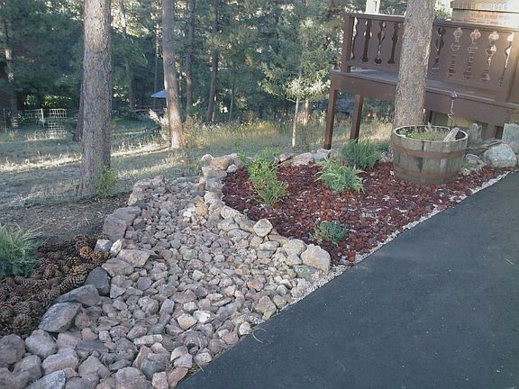 4Bd/3Ba, 2511 sq.ft, 2 car garage, 1.01 acre. Ranch style/split level home w/walkout lower level offering main level living. Spacious rooms & open floorplan. Located near Evgergreen Lake, open space & downtown shops. Views of Evergreen golf course. Quiet setting, no hwy noise. Flagstone walkway, playground, large deck around half of house, bbq area 2010-2012. DirecTV satellite dish, Comcast internet, two way asphalt driveway, trees trimmed for fire mitigation, biannual tree care. New custom garage doors. Plantation shutters in upper bedrooms, bottom up/top down blinds upstairs, matchstick blinds downstairs added 2010. New carpet 2019. Roof upgrade 2014. Countertops, sinks, kitchen/bathrooms floors replaced 2010. Well maintained home and property. Professional tree and landscape maintenance since 2009.