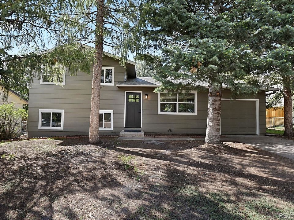 A remarkable, fully renovated tri-level in the quiet Holly Hills neighborhood of Colorado Springs is move-in ready. Share this spacious, shaded, and fully fenced yard with the neighborhood deer that also call it home. This freshly painted exterior and interior along with many new features, make this charming tri-level move-in ready. As you enter you will appreciate the new wood laminate floors, ceramic plank tiles, and carpeting throughout the home. The open concept main level allows for spacious entertaining from the inviting living room, to the kitchen and dining area. Imagine cooking in this modern kitchen with all new stainless steel appliances, a gas oven, beautiful grey cabinetry, an amazing granite island, and countertops. As you go upstairs you will find a spacious, carpeted primary bedroom with ample closet space and lovely views of mature spruce trees, and a welcoming backyard. The good-sized second bedroom shares those front yard forest-like views. The upper bathroom is newly renovated with new fixtures and plumbing. As you head downstairs to the family room you will love the garden-level views and extra space to relax. The private 3rd bedroom shares those garden-level views with an adjacent bathroom and laundry room. This move-in ready stunning house is ready for you to call it home.