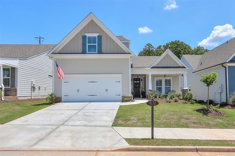 ACTIVE ADULT COMMUNITY! House back on market! Financing fell through. 3BR 3BA Crafstman style home in sought after Forsyth county. GREAT location near shopping, restaurants, and grocery stores. Gourmet kitchen features oversided island overlooking family room and dining room, stainless steel Whirlpool appliances, granite countertops , tile backsplash and microwave. Main floor primary suite boasts vaulted ceiling, oversized bathroom with zero entry walk in tiled shower with seat, raised vanities and walk in closet. Upstairs includes a 3rd bedroom along with an oversized finished loft.