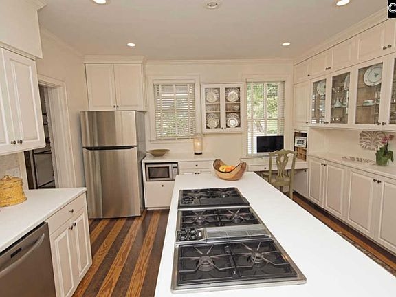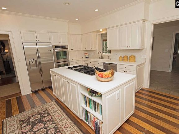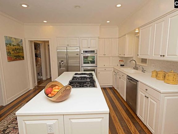 - Kitchen: Counter Tops-Solid Surfac, Island, Backsplash-Tiled, Cabinets-Painted, Recessed Lights