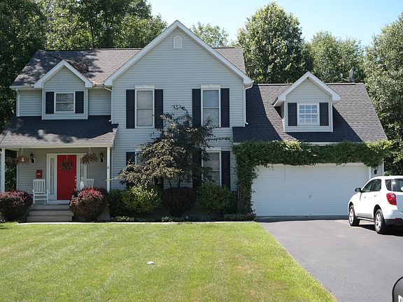 Lovely well kept 3 bedroom/ 2.5 bath home. Hardwood floors, gas fireplace and laundry on first floor. Great room with slider onto large deck. Master suite with walk-in closet, future bonus room above garage and cozy rec room in basement with plenty of storage. This 3/4 acre property is in a nice quiet neighborhood, a must see.