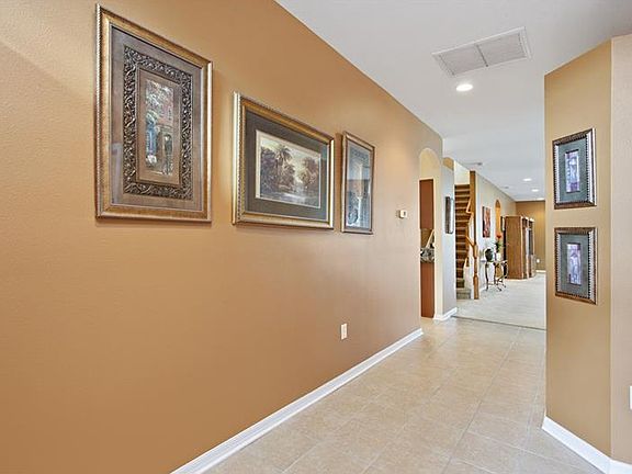 Beautiful place to call home in the peaceful neighborhood of Country Walk, this home sits on conservation and overlooks a pond. This large home boasts three bedrooms, two bath, and large upstairs bonus room. Bright and open floor plan lets in all the natural light through many windows and sliding glass door. Grand foyer gives you a warm welcome into the living and dining room combo. Cozy thick carpet flows throughout. Gourmet kitchen features granite countertops with tile backsplash, recessed lighting, stainless steel appliances, eat in breakfast nook space and closet pantry. First floor Master suite presents high double-tray ceilings, huge master bath with dual sinks, Corian countertops, and relaxing garden tub with separate shower. Enormous upstairs bonus room can be whatever you desire to make it. All bedrooms are spacious, bright, and cheerful. Back screened porch is perfect for enjoying the Florida weather. Privacy gate outlines your backyard paradise. Country Walk community offers a 5,000 square foot community center with fitness facilities, playground, outdoor courts, soccer field, dog park, greenspace and two pools all just 4 miles east of I-75, south of State Road 54, conveniently close to Wiregrass Mall, Tampa Premium Outlets, dining, Florida Hospital and entertainment. Great schools in the area as well as Pasco State College. This community sits in the perfect spot for today and the future growth! Come see why this home is meant to be your new home! Taxes include CDD.