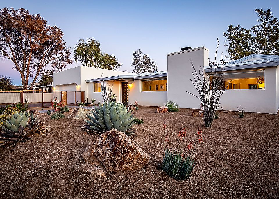 * ''Modern Ranch'' Contemporary desert dwelling in the center of town. This expertly updated home with an open floor plan and a true dream kitchen. The Interior--Vaulted beamed ceiling, polished concrete floors, brushed aluminum double pane windows. Amazing chef's kitchen with solid walnut island counter, La Cornue gas range, and custom cabinetry. Remodeled bathrooms with rift-sawn white oak cabinetry. The Seamless indoor/outdoor flow, built for entertaining. The Exterior-- Smooth hand-troweled stucco, standing seam metal roof, the large extra deep two-car garage with paver driveway. The back-covered patio with built-in natural gas grill all situated on a 13,000 sq ft lot. Conveniently located near shopping, great restaurants, and entertainment. Seller is a licensed real estate agent