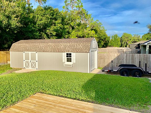 Built 2012, several additions added 2019. 3 bed, 2 full bath, 2 car attached garage w/ oversized bonus room/office. Concrete/stucco construction split plan home on 1/3 acre with bonus 2 car Cook's portable lofted workshop/garage 12x32 behind house in 6ft fenced, secured back yard. Outdoor patio w/pergola, plenty of yard for the family or pets to run around. Also parking for boat/RV/trailer. No rear neighbors for added privacy. New paint inside and out, glass insert front doors, rear patio/pergola, gutters, and privacy fence added in mid 2019. Charming home with nice bonus areas up front. Open kitchen to main living area for entertainment, private master suite with split floor plan. Definitely one to see to appreciate! Many upgrades/extras! This one will not last long! Priced to sell! Schedule your showing today!