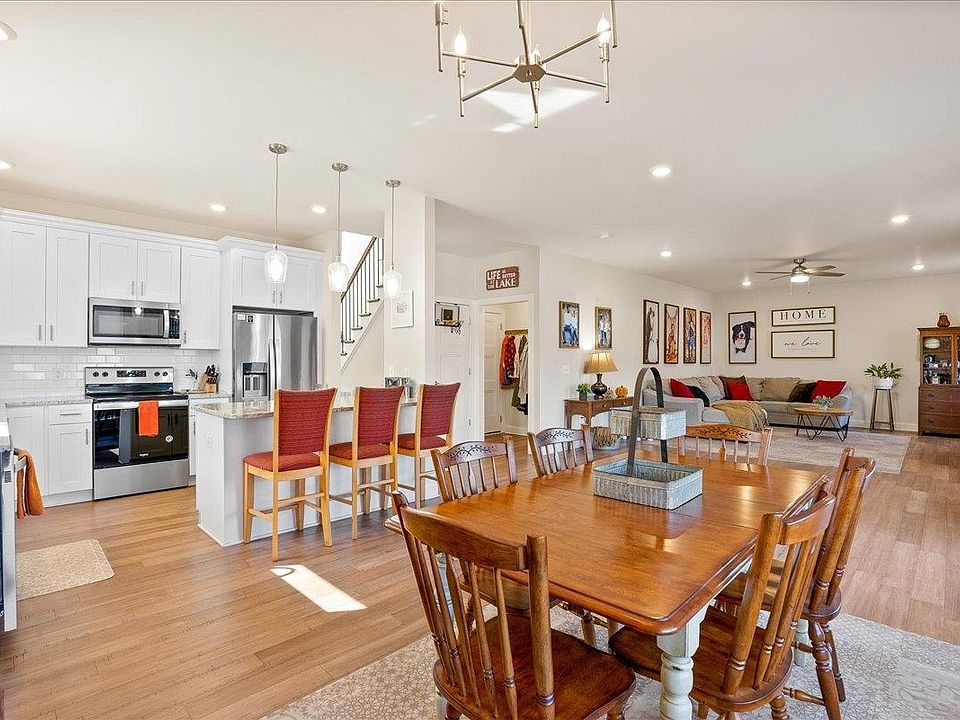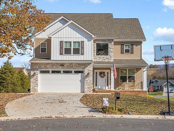 Cul-de-sac living with a view on Finn Court! Tons of space in a convenient location. Open concept floor plan on the main level with the kitchen that overlooks the dining and living room. Kitchen features island with breakfast bar seating, white tile backsplash, stainless appliances and granite counters. Spacious living room with gas log fireplace and tons of natural sunlight. Rear deck adds entertaining space during warmer months. The upper level owner's suite features tray ceilings, walk-in closet, and private tiled bathroom with walk-in shower and separate soaking tub. Three other bedrooms, laundry room and full bathroom completes the second level. Tons of storage in the extra crawl space and large two car garage (long enough to store a bass boat). No shortage of features to appreciate inside and out!