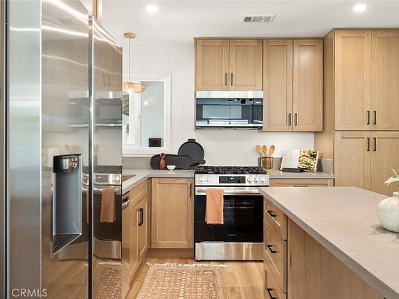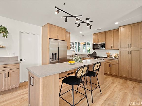 Welcome to 4130 Franklin Avenue, a beautifully reimagined single-level residence situated in a tree lined cul-de-sac in the city of Fullerton. This fully remodeled 4 bedroom, 2 bathroom home seamlessly blends modern elegance and comfort, featuring an open-concept kitchen and living space perfect for both entertaining and everyday living. The thoughtfully designed kitchen showcases slate quartz countertops and oak shaker cabinets with under cabinet lighting, and provides ample storage alongside a large island great for daily use and casual gatherings. Brand new stainless steel appliances and a delightful coffee bar elevate your culinary experience. Retreat to the serene primary suite, complete with a beautifully appointed bathroom featuring a freestanding tub, a separate glass shower, and designer finishes. Enjoy the comfort of central air and heat, enhanced by a brand new Nest thermostat for smart climate control, brand new dual pane windows and sliding door, plus the convenience of an attached 2-car garage with direct access and additional storage. Step outside to discover the expansive backyard, complete with a stylish patio and pergola, ideal for al fresco dining and memorable gatherings under the stars. The refreshed front landscape offers a lovely garden patio area, where you can sip morning coffee and enjoy tranquil sunsets by a warm fire. This charming home is truly the perfect place to call your own, ready to welcome you just in time for the fall and holiday season. Video tour: youtu.be/9KsmSP9QwEg