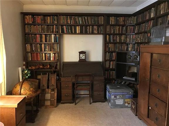 Solid house but needs updated . Nice built in custom bookcases in first floor den, 2 full baths, plenty of off street parking, second floor has unused kitchen sink and counter can be converted to laundry room area. Fenced in level back yard.