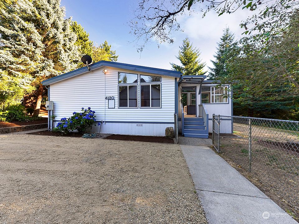 Enjoy nearly 1.5 acres on your own homestead tucked away on a quiet road surrounded by lush trees. The property boasts a cute woodshed/clubhouse, fully fenced backyard that overlooks your property, fully fenced animal enclosure & 3 car garage, the third bay turned into a heated workspace & French drain from door to door. The main house features a low maintenance metal roof, new trex deck/stairs to the backyard & freshly painted interior offers so much light & space. The wood burning fireplace is showcased by custom stain glass that looks beautiful when lit from behind & will keep you warm on those cool PNW nights & AC for summer. Spacious primary bedroom w/ walk in closet-3/4 bath & the other 2 bedrooms have Murphy beds & tons of storage.