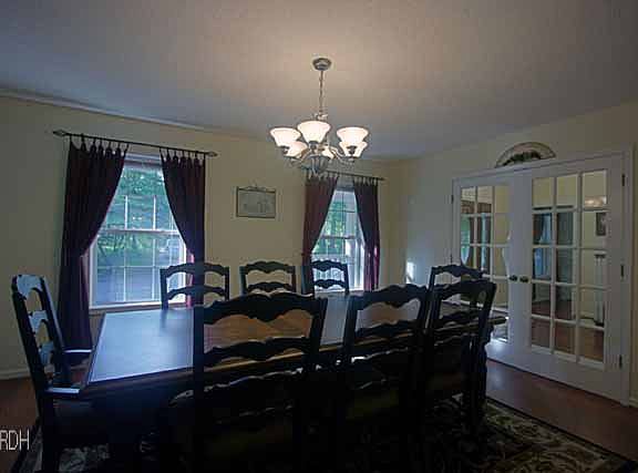 8.48acres,fiberglass saltwater pool w/52x16 decking & fenced separate,30x30 detached workshop w/3ton HP & insulated,wood priv. fenced w/garden,2bedrms down w/2 full baths down & 2bedrms upstairs w/each priv. full bath.Laminated hardwood floors in foyer,dr,& kit. Kit has granite w/isl.Separate utility rm,large front porch & cir. drive & 2 car side gar. Ample big game on property,deer stands remain.
