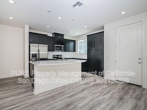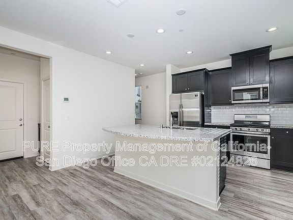 Lovely single-family home in the highly desirable Mission Lane Francia development in Oceanside. This four bedroom, two and a half bathroom rental home features 1,962 SqFt with an open floor plan, contemporary finishes, and great community amenities. The home's entryway opens up to a bright and spacious living area and kitchen with a sliding door opening up to the home's enclosed patio. The kitchen features stainless appliances, subway backsplash and an island with space for dining seating. The first floor includes a powder room and built-in hallway storage cabinets.