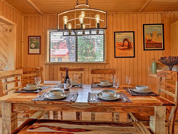 Two bedroom one bath cabin in Meadow View Heights (the community just up the hill/mountain from "the Village" Duck Creek Village. Zillow automatically put our address and zip code in Alton but we are zip code 84762 in Duck Creek Village. We lease our cabin on a basis nightly year-round (Zillow only allows you to add a monthly amount). Nightly prices range from $130-$199 depending on the time of year (spring and summer are peak season). Two of the most important features of our cabin (in our opinion and why we purchased the cabin) is it's location on a dead end lane and the wonderful views of Duck Creek Village, the meadow and surrounding mountains from the large deck. The roads can be dusty and the dead end lane is very quiet, secluded with very little dust. The views of the surrounding mountains, Duck Creek Village and sky are amazing. NOTE: Duck Creek Village is about 8500 feet above sea level. The cabin is also very open and bright...when we looked at buying a cabin so many were dark and closed in. We wanted light and bright! NO PETS....we have severe allergies. Just after Thanksgiving we put up a lighted holiday tree and some tasteful holiday decor for our guests to enjoy (we get to enjoy it too if we make it there during December) 2 bedrooms each with king beds and plush bedding 1 large full bath with tub/shower combo in between both bedrooms (separate access to bathroom) comfort height commode. Queen plus sofa sleeper in large main living area. Unlike most sofa beds mattresses, two people can sleep comfortably side-by-side with no motion transfer. There is no gap between the mattress and back or arms and no parts of the mechanism are exposed, so it's safe for children. Even though the cabin CAN sleep up to 6, we really feel our cabin is great for 2-4 people maximum and prefer to keep it that way :) We lease our cabin nightly year-round. We do have professional snow removal for the driveway in the winter. The unpaved roads in the area are plowed and usually snow-packed as well but we do require you have a 4 wheel drive and chains just in case. ** Full Kitchen including full size refrigerator, oven, new full size above range/oven microwave (not in photos) that direct vents to the outside of cabin, portable dishwasher (needs to be attached to kitchen faucet to run). We do dishes by hand most the time. ** We have installed a new stainless/black stove/oven that is more versatile, better at cooking (not in photos yet) ** Coffee maker (#4 filter), mini Keurig machine, toaster, blender, large crock pot, waffle iron, plenty of dish ware, cookware, utensils and specialty cooking items too! **Plenty of specialty adult beverage drinking items (stemware, openers etc.) **55" Smart HDTV with Blue ray player and surround sound system. DISH satellite. **Huge, beautiful wood burning stove with blower in large living area. **Large deck with high quality patio furniture and a large propane BBQ grill (propane tank can be exchanged at the Duck Creek True Value, if needed). **Fire pit outside next to the cabin.....make s'mores, have a cocktail by the fire, look up at the stars! Plenty of chairs and space. Generally not available in winter as it is covered by snow! **Garage under cabin for some storage (ATV, OHV, UTV, bikes etc.) not quite large enough for a car/truck.....great to work on ATVs, snowmobiles, bikes, skis etc. **Exterior hose and faucet to clean your toys **Full size washer and dryer in garage (under main portion of cabin, see photos) **RV parking and plenty of space for vehicle parking. **HIGH SPEED WiFi Internet (upgraded to much faster service), we get great service on our cell phones (Verizon, AT&T, T Mobile) at the cabin but very limited service on highway 14 (on your way to cabin) **Plenty of games, books, puzzles, and area guide books, local literature and maps **All one level living **June 2021 we replaced our water heater with a larger and more efficient unit We also added a new bathroom exhaust fan with SurfaceShield with Vyv antibacterial light technology It helps keep spaces cleaner. The fan quietly removes humidity from the room and destroys bacteria, mold and fungus with the flick of a switch. We have 4 high efficiency convection wall panel fan-less heaters for the bedrooms and main living area. They are SAFE for children, slim and silent (no fan). Heat in each bedroom and living area can be controlled separately. We also have a mobile infrared room heater to help warm up the cabin while you start a fire or to use to replace the fire. We have a small electric "fireplace" in the cabinet under the TV as well. March 2021: we stayed at our cabin for 4 nights and did not need to start a fire in the wood stove. We were able to use the heaters in the cabin. Our wood stove is fabulous but sometimes I don't want to smell the smoke! Note: The cabin is very clean HOWEVER despite our best efforts to keep it clean; we do get cobwebs quickly (cleaning one day and webs the next). It is a cabin in the mountains! I rarely see spiders but I do see their webs. Wildlife abounds here.....plenty of deer, birds, chipmunks, squirrels, crazy gaggles of wild turkeys rumble around our lot and surrounding vacant lot before taking flight to roost in the trees in front of our deck! They look like lumbering, heavy planes trying to get a running start to fly! This small mountain town sits right off Highway 14 on Cedar Mountain in Dixie National Forrest and is a gateway to some amazing near by National Parks including Bryce Canyon and Zion Canyon. With highway 14 taking you east to Highway 89 you can virtually be to Zion to Bryce in just about an hour and escape the hectic park traffic nearby the parks. This Cedar Mountain town called Duck Creek is full of Pines, Cedar, and Aspen filled meadows that all has an abundance of wildlife. The local wildlife include; Mule Deer, Elk, Antelope, Black Bear, Cougar, Turkey, Grouse, and many other small game. Distances From Duck Creek: Aspen Mirror Lake .5 miles Brian Hea