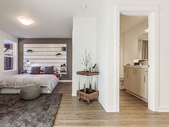 Beautiful new urban townhome-style condo w/a farmhouse twist! Thoughtful design abounds in this spacious open plan w/fireplace & huge kitchen island. Master suite, barn door, w/in closet & tiled w/in shower. Private downstairs suite/flex space w/outside separate entrance. Perfect for guest suite of rental studio. Income potential! Private backyard w/full landscaping,dual decks & irrigation. Photos are representational.