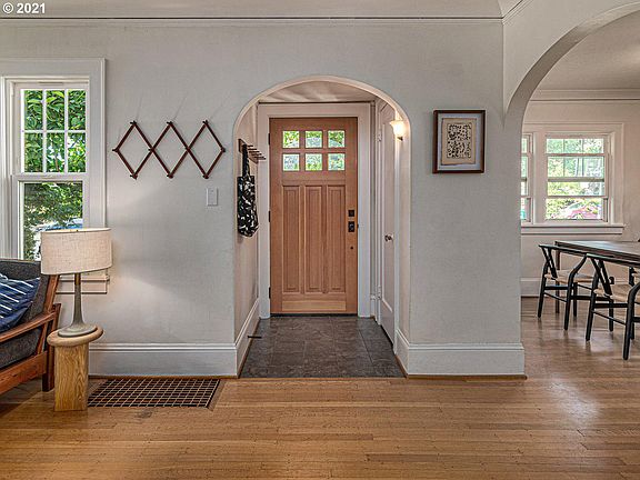 English charmer in heart of SE Clinton neighborhood.Classic architecure combined w/modern style. Open living room w/wood fireplace.Hardwood floors.Updated kitchen w/open shelving & stainless appliances.Primary bedrm on main.Bathroom w/slate tile. French drs to deck & stone patio. Upstrs: 2 bedrms.Unfinished bsmt w/potential to create more living space.Updated plub,elec,& more.Private backyard oasis is great for entertaining.Oversized workshop garage.Only 2 blks to SE Division shops +FOOD! [Home Energy Score = 2. HES Report at https://rpt.greenbuildingregistry.com/hes/OR10193274]