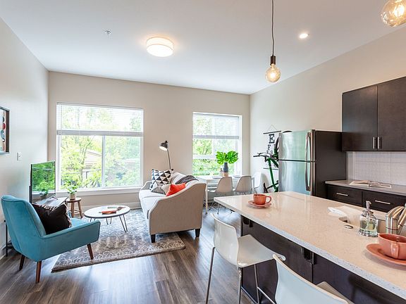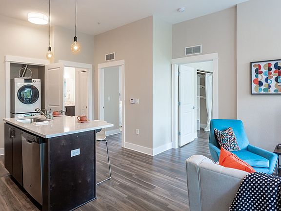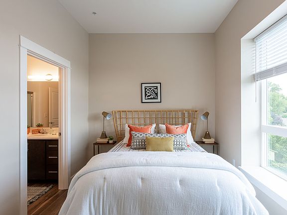 This 2 bedroom, 1 bathroom apartment home has stunning luxury finishes, beautiful countertops, a kitchen island for bar seating, huge closets with convenient built-in shelving, in-unit washer and dryer and is in a great location right past the curve on Division Street! The huge ceilings make way for incredible natural light with views of the mountains and the city!