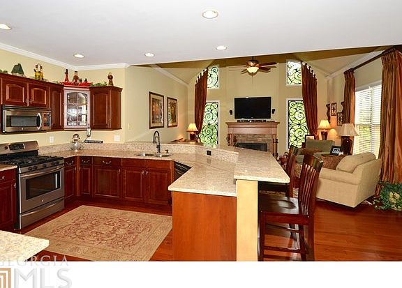 STUNNING wooded beauty with rich details! Side entry garage with carriage doors, covered porch ideal for friendly evenings with neighbors. Two-story foyer flanked by formal rms richly appointed with modern trim details. Gourmet kitchen with SS appls, granite, & breakfast bar for snack time. Open floor plan with a vaulted fireside FR. Inviting master suite with sitting rm and a private screened porch & closet shelving system. Terrace level with enormous living areas, fabulous bar, full bath and more. Beautiful back deck with custom shade sail and quaint lattice walls.