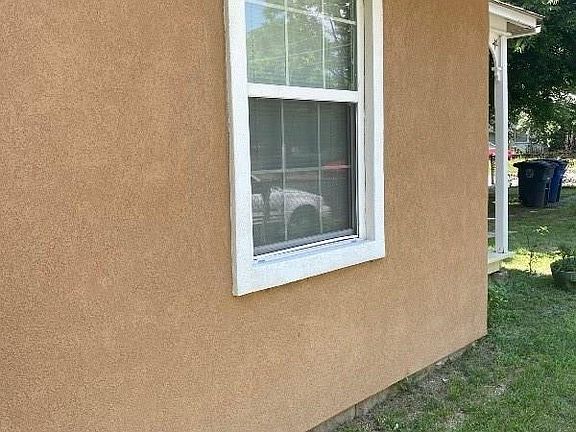 - Exterior features: Stucco, Wood