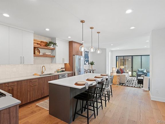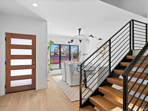 Berkeley's newest construction duplex, offering a highly-desirable location with close proximity to the best of the Tennyson Street Cultural District. This modern and open floor plan is paired with high-end and thoughtful finishes. Warm tones and comfortable living spaces accentuate an address on one of northwest Denver's most sought after blocks. Main floor features entertainer's kitchen with oversized cabinets and large island, pantry, living room with large gas fireplace that opens to backyard, stylish powder bath with natural oak accent wall, and functionally-designed mudroom. Second floor captivates with large primary suite including 5-piece bath and large walk-in-closet, second bedroom with full ensuite bath/WIC, and laundry room. Top floor brings you to the third bedroom, full bath, wet bar with beverage center/sink, and private rooftop deck with incredible mountain views to the west, an extremely rare find for the neighborhood. Butcher block stair treads throughout and steel railings. Oversized two car garage with ample room for storage. Brick exterior, oversized Marvin windows, Bosch professional range, Delta and Kohler bath fixtures, and Cat 6 prewire. No detail overlooked. A short walk to the neighborhood's top restaurants, shops and more.