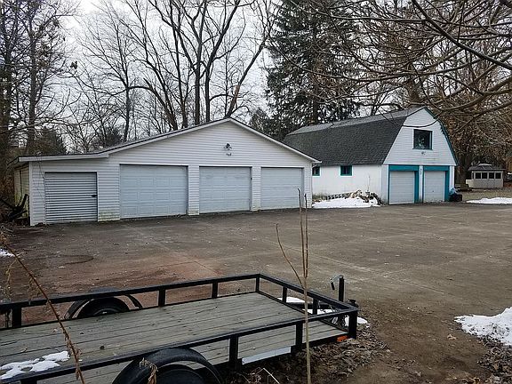 Brick three bed room one and a half baths wet plaster hardwood floors 13'6'' x 17' formal dining room , 13' x 21' Living Room , 14' x 11' Master bedroom, Bedroom #2 9' x 12' , Bedroom #3 10'6" x 20' Kitchen 14'6" x 9', Family room 23' x 28' w/ walkout to brick paver patio, Utility room 16' x 11' 6", half bath in basement plus storage room and cold room would make a great wine storage room, 6 person Hot tub in a hot tub house off a 45' x 16' deck. Property has two out building building #1 is a block structure 4 car with a upper loft 25' x 36'. Building #2 is a stick build 6 car garage with a garden bay for lawn equipment 41' x 34' in front of both buildings is a 90' x 60' cement slab. 210 ' cement driveway with parking for 5 cars. House ha s natural gas water base board heat. House is connected to city water but is on a septic system . Septic system was replaced this year . Utica school district , Property has several Oak , Cedar and Pine trees.