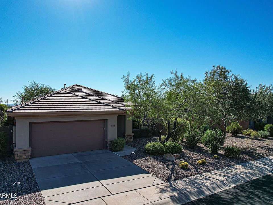 Price Improvement - MOVE-IN READY!! The home is located on a premium lot with impressive golf course, lake & mountain views. Anthem County Club is guard gated and has all the amenities of you would expect of a country club lifestyle. Natural open space to the west providing additional privacy. One of the guest rooms includes built-in cabinets providing office space with a murphy bed. Large primary bedroom with stunning views of the golf course. There's an oversized bathroom with separate tub and shower, dual sinks and large walk in closet. Large kitchen with beautiful stainless steel appliances (no refrig), cherry wood cabinets, granite counters. Versatile floorplan with formal living & dining room. Built in BBQ, covered patio, 2 car garage w/ epoxy floors.
