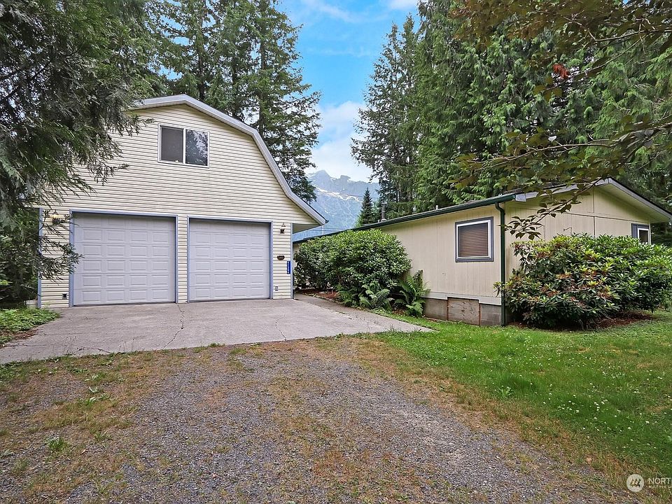 Nestled in a Parklike Setting with Whitehorse MTN in the Backdrop on 1/2 Acre & with Squire Creek Private Creek Frontage! Plus Detached SHOP/GARAGE with Loft for plenty of Storage & Electrical Power for all the Mechanic's Needs! Interior Warmed & Cooled by Heat Pump w/Air-Condtioning & boasts Vaulted Ceilings, Built-In Desk Secretary as you walk-in! Spacious Primary Bedroom with 5 Piece Ensuite, 2nd Bedroom has Walk-In Closet and a Den/Bedroom for Guests! Kitchen features Walls of Cabinets, Eating Area complete with Table & 4 Chairs! Living & Dining Room for formal Entertaining & Family Room featuring Slider to Entertaining Size Deck views Whitehorse & Amazing Yard filled with Rhododendrons! Plus Detached Cottage & Detached Garden Shed!