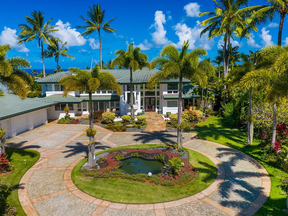 With over 4,100 square feet of interior living space, you step through a formal foyer into a dramatic Grand Room with soaring ceilings and a sweeping wall of windows. The view—stretching from the Prince Golf Course to the ocean—is uninterrupted and visible from the Grand room.kitchen, den, office, all three bedrooms, and the luxurious master bath.