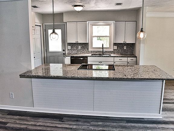 Totally renovated 3 bedroom, 2 bath home. Open floor concept, spacious living area. Updated kitchen with new cabinets, ss appliances, granite counter tops, tile backsplash. New flooring throughout. Tile tub surrounds in both bathrooms. Metal roof, fenced back yard , sprinkler system, and 2 storage buildings.