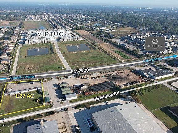 Exceptional opportunity to acquire 1.279 acres with approximately 239 feet of frontage along FM 2920. The property offers level, fully cleared land and is served by Bridgestone MUD. In addition to FM 2920 exposure, the tract includes approximately 221 feet of frontage on Kreinhop Road, providing excellent visibility and multiple points of access suitable for a variety of commercial uses. FM 2920 carries an average daily traffic count of 34,436 vehicles (per CoStar), making this an ideal site for users seeking strong traffic exposure. The property is conveniently located with easy access to I-45, the Grand Parkway (99), and Kuykendahl Road, and is surrounded by established residential and commercial development. Ideal for retail, service businesses, contractor yards, or other commercial uses, this versatile tract offers outstanding development potential.