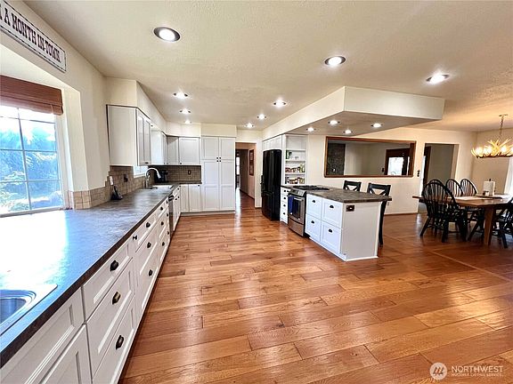 Westside 4-bedrm, 3,100 SF on 4.94 acres w/irrigation. Lge kitchen w/expansive counter space! Spacious open layout - great rm, living rm w/FP & rec rm w/wetbar. Primary suite is a true haven, features remodeled bathrm & Fr drs that open to deck w/a hot tub. Abundance of storage throughtout! Outside private oasis, Trex deck, lush landscaping, flower beds & lg decorative rocks. Custom gazebo-ideal BBQ space. Fully-equipped shop w/a heated garage, 240 pwr, workbenches, 1/2 bth & rm for your projects. Equestrian enthusiasts will appreciate the fully fenced & cross-fenced pastures + barn w/4 stalls, tack rm & large covered area for tacking up or hay storage. For the green thumb, there's a garden space w/fruit trees.Paved circle driveway!