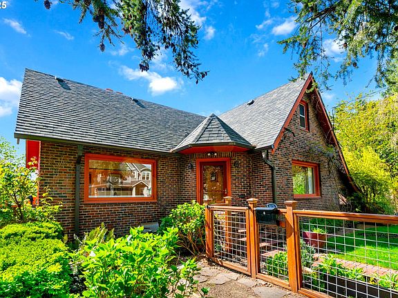 Welcome to your next adventure. Nestled atop Portland’s coveted Overlook Bluff, this 1930 Brick and Cedar English-style home presents a rare opportunity for visionary homeowners or developers. A true diamond in the rough, this charming residence is perched on an expansive 0.71-acre usable lot—offering a unique blend of privacy, character, and natural beauty that’s becoming increasingly rare in the city. The property features mature landscaping and a thriving urban garden complete with flourishing blueberry bushes, fig, plum and apple trees, grapes and raspberries making it an ideal setting for gardeners, nature lovers, and dreamers alike.Inside, large windows invite an abundance of natural light and offer peaceful views of the surrounding greenery, perfectly framing those iconic golden-hour sunsets—bluffside and breathtaking. Whether you're looking to expand, redevelop, or simply restore and enjoy, the possibilities here are wide open. Recent updates include a newer furnace, A/C, tankless water heater, decommissioned oil tank, and a newer sewer line, offering a solid start for your renovation vision.Located in a private yet convenient pocket of North Portland, you're just minutes from parks, local amenities, and excellent transportation options. Whether you're a savvy investor, a green-thumbed dreamer, or a creative soul looking to build your sanctuary from the ground up, this is your chance to create something truly special. Property is being sold as-is; seller will make no repairs. Bring your vision and come see the possibilities. [Home Energy Score = 1. HES Report at https://rpt.greenbuildingregistry.com/hes/OR10236319]