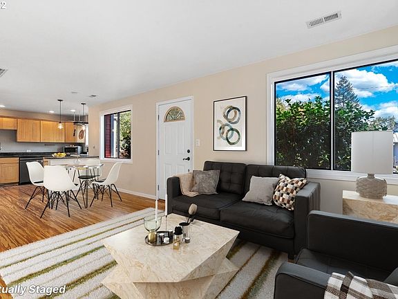 Single-level Ranch home with all the right updates on a quiet neighborhood street! Just blocks away from schools, parks, and nearby shopping and eateries. Bamboo floors through the entire home with plenty of windows give a light and bright feel. Central kitchen opens into both the living and family rooms, space in family room to have a dining area. Remodeled bathroom w/walk-in shower. Newer furnace, A/C, plumbing. Huge fenced backyard w/tool shed, raised beds, patio, and firepit. A must see! [Home Energy Score = 4. HES Report at https://rpt.greenbuildingregistry.com/hes/OR10205457]